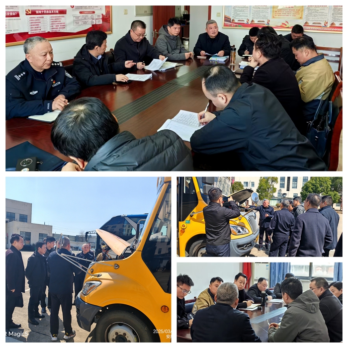 為深刻汲取淮南“2·27”校車事故慘痛教訓(xùn),消除安全隱患,2025年3月17日上午,安慶市校車聯(lián)席會議安全檢查組一行四人到童安校車服務(wù)分公司開展督導(dǎo)檢查,桐城市教育局局長疏波、桐城市教育局黨委委員吳瀾、桐城市交警大隊副大隊長汪夕亮,桐城市道路運輸管理中心副主任汪郁陪同檢查。