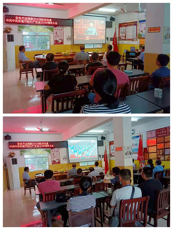 樅陽分公司黨支部組織廣大黨團員、入黨積極分子、各科室骨干,以及車站派出所部分干警,在黨員活動室集體觀看了慶祝中國共產(chǎn)黨成立100周年大會實況。